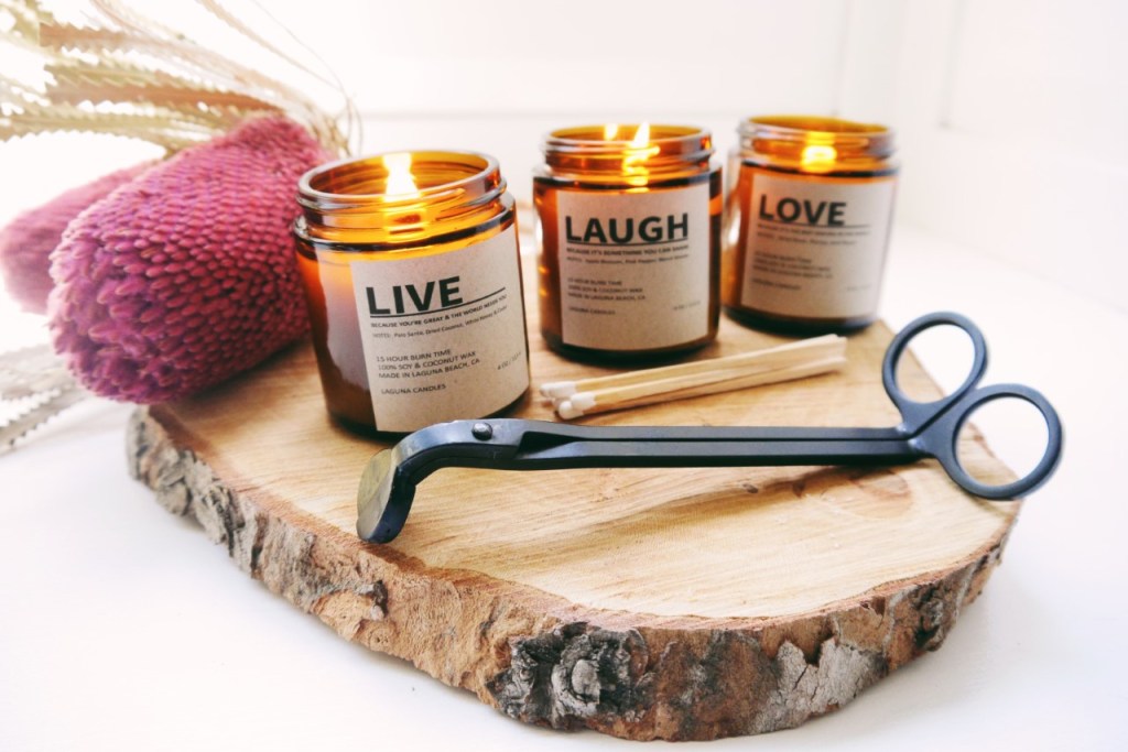 3.Never extinguish a candle by blowing, as it may cause splashing and wax spills. Always use a Laguna Candles snuffer or Laguna Candles wick dipper.